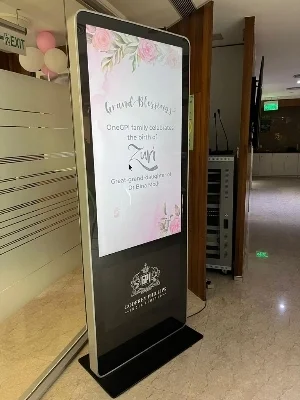 The 75-inch digital standee by Nutric Enterprises is a smart vertical signage solution ideal for malls, retail stores, corporate lobbies, and exhibitions. Built for high-impact branding and dynamic content display.